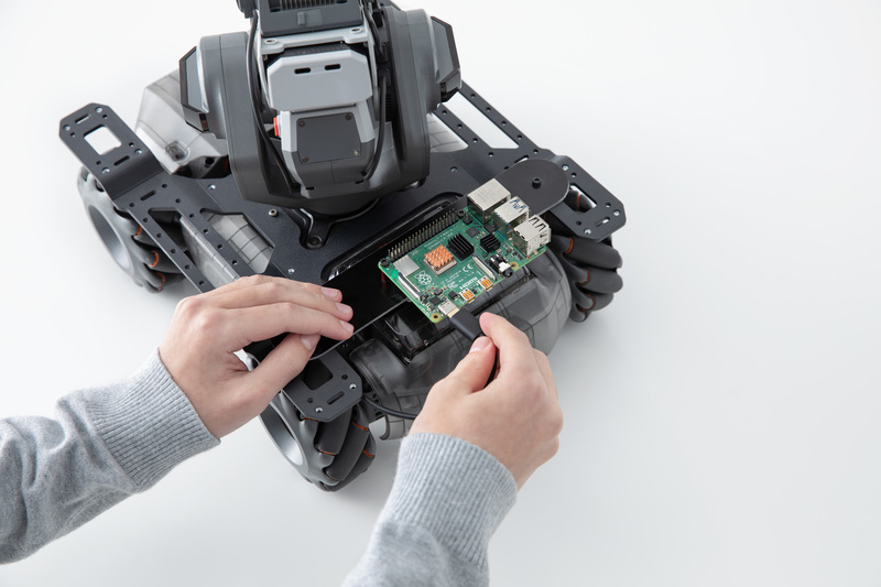 此外,RoboMaster EP 还支持外接“Micro:bit”、“Arduino”、“树莓派”等第三方开源硬件,且能利用自身电池为它们供电。同时,通过人工智能芯片平台 Jetson Nano 和 SDK 进行模型训练和场景识别,RoboMaster EP还能帮助学生在实践中更深入地理解人工智能运作原理。