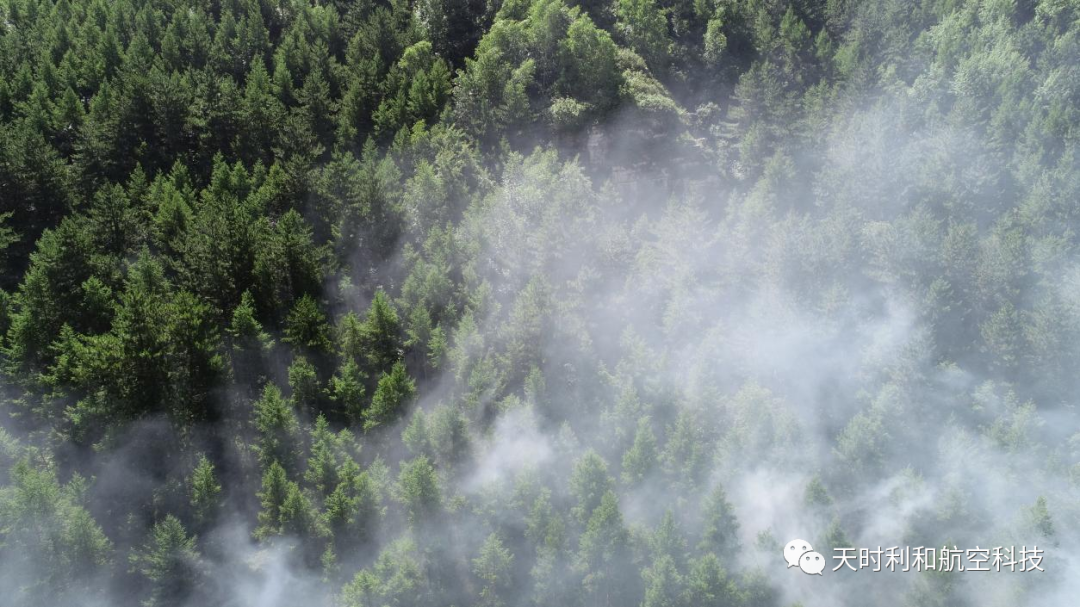 傍晚冷空气下降,无人机从高处的山顶飞过,弥雾无人机的烟雾借助冷空气的下降与森林植被融合在一块,随着自然风的扩散,烟雾从高处流向山脚,如同织成了一层青黛色的轻纱笼罩在林区,四周的树木便朦胧在这烟雾中,层层叠叠环绕在树林周围久久没有散去。科技创造想象力,科技带来生产力,利用弥雾无人机的高科技手段在森林病虫害的防治上达到了非常理想防治效果。