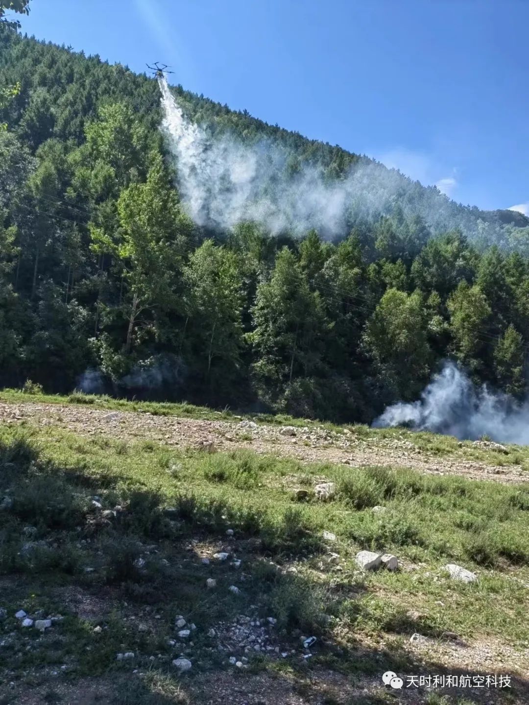 2023年8月4日至8月5日,公司飞防组人员又赶到位于大同市灵丘县五台山国有林局唐河林场史庄辖区的石翁村和落水河云彩岭林区,对落叶松鞘蛾进行无人机喷烟作业。多次的喷烟作业,公司团队更加熟悉无人机喷烟作业的规律,防治效率不断提高,对森林病虫害的防治工作更有信心,这次飞防作业同样取得令人满意的成效,公司再次为保护绿水青山奉献出企业的一份社会力量。